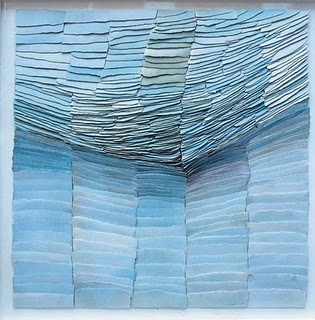 I love these ceramic tile murals by Belgian artist Jeanne Opgenhaffen, they are inspiring me to play around with the giant box of wood veneers I have in my studio!